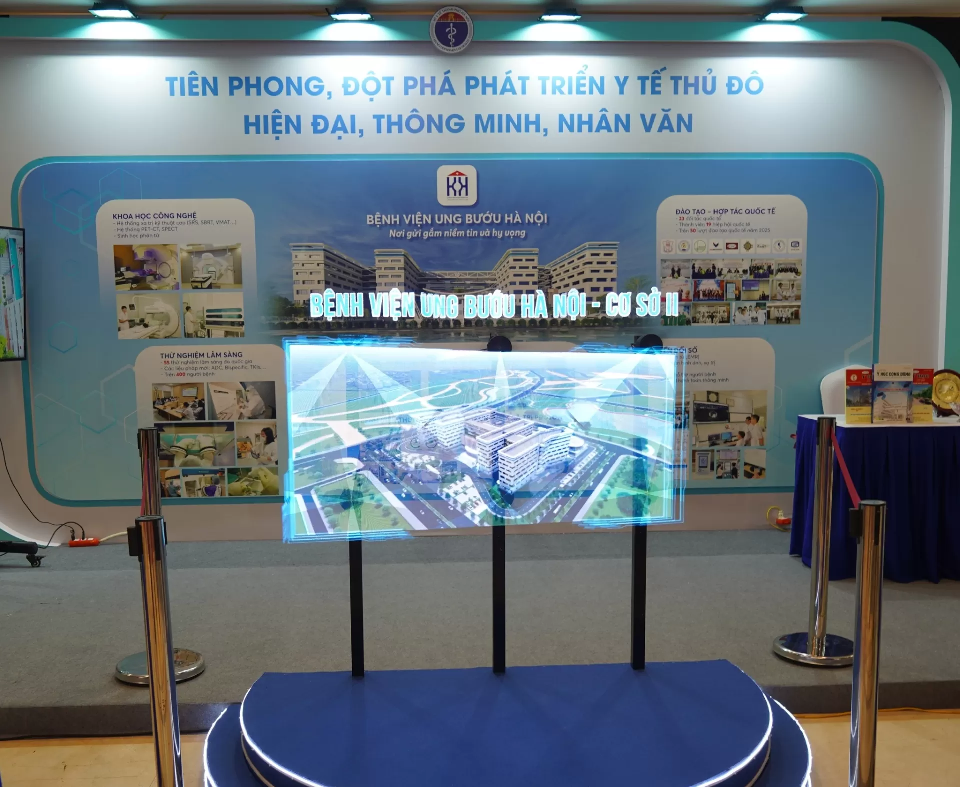 Tham gia chương trình triển lãm thành tựu ngành Y tế, Bệnh viện Ung Bướu Hà Nội đã giới thiệu nhiều kết quả nổi bật trong chẩn đoán và điều trị ung thư, ứng dụng kỹ thuật cao, thử nghiệm lâm sàng, chuyển đổi số, phát triển hợp tác quốc tế - nghiên cứu khoa học