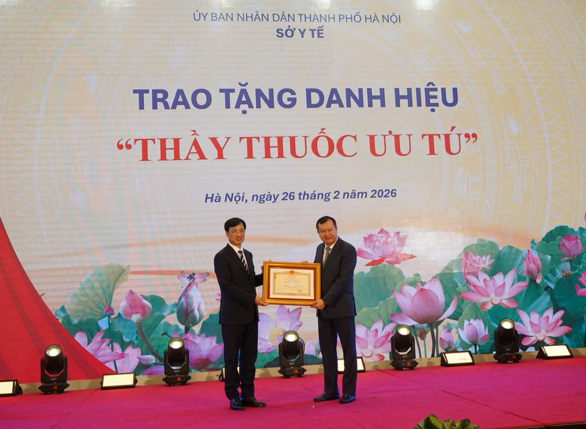 TS.BS. Bùi Vinh Quang - Bí thư Đảng uỷ, Giám đốc Bệnh viện Ung Bướu Hà Nội vinh dự trao tặng danh hiệu cao quý “Thầy thuốc Ưu tú”.