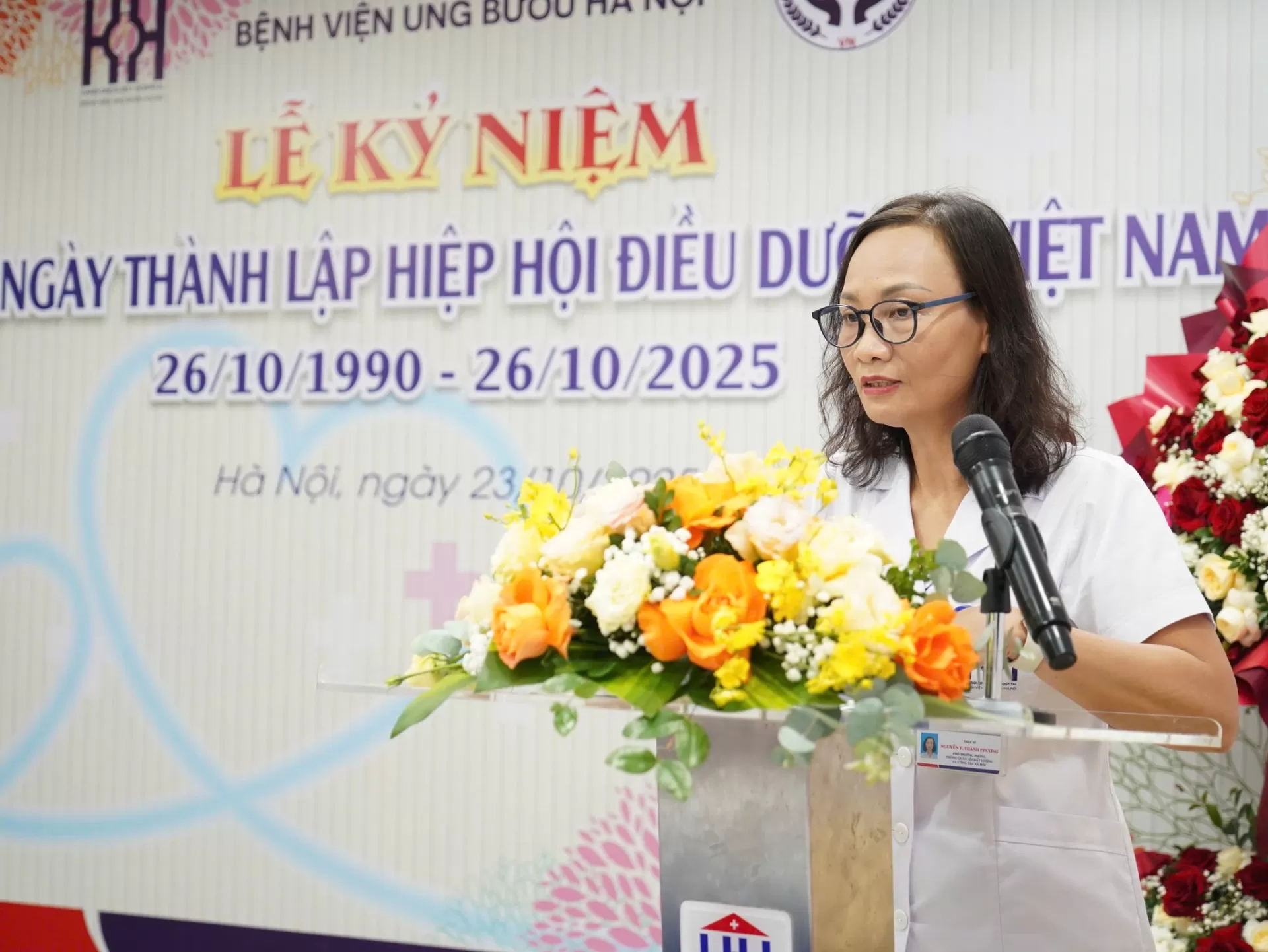 Tại lễ kỷ niệm, các đại biểu cùng ôn lại chặng đường hình thành và phát triển của Hiệp hội Điều dưỡng Việt Nam. ThS. Nguyễn Thị Thanh Phương – Điều dưỡng trưởng, Chi hội trưởng Chi hội Điều dưỡng Bệnh viện Ung Bướu Hà Nội đã báo cáo tổng kết, đồng thời giới thiệu những hoạt động nổi bật của Chi hội Điều dưỡng Bệnh viện trong thời gian qua.