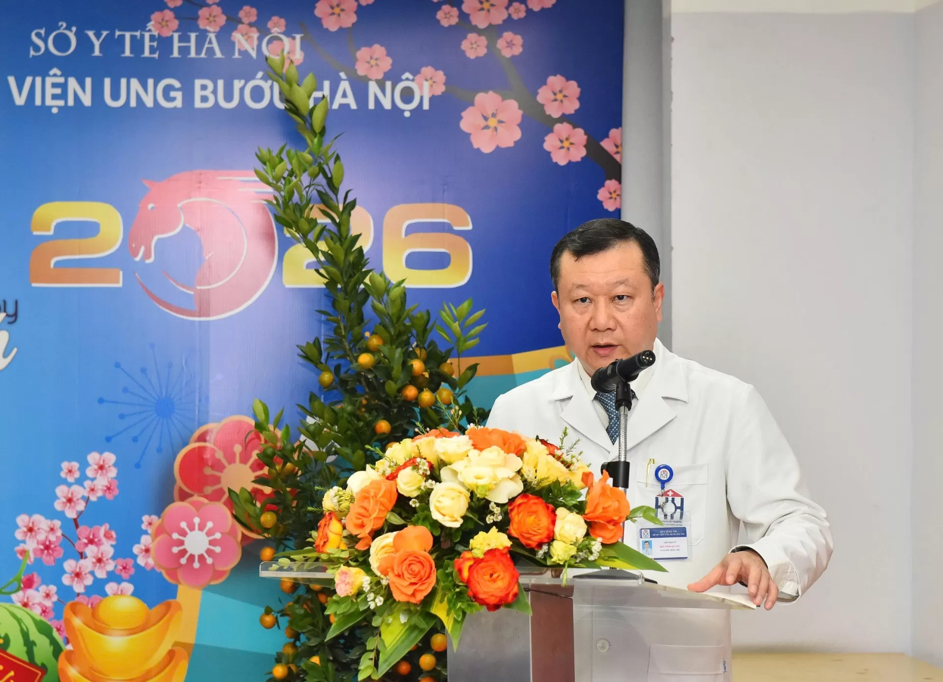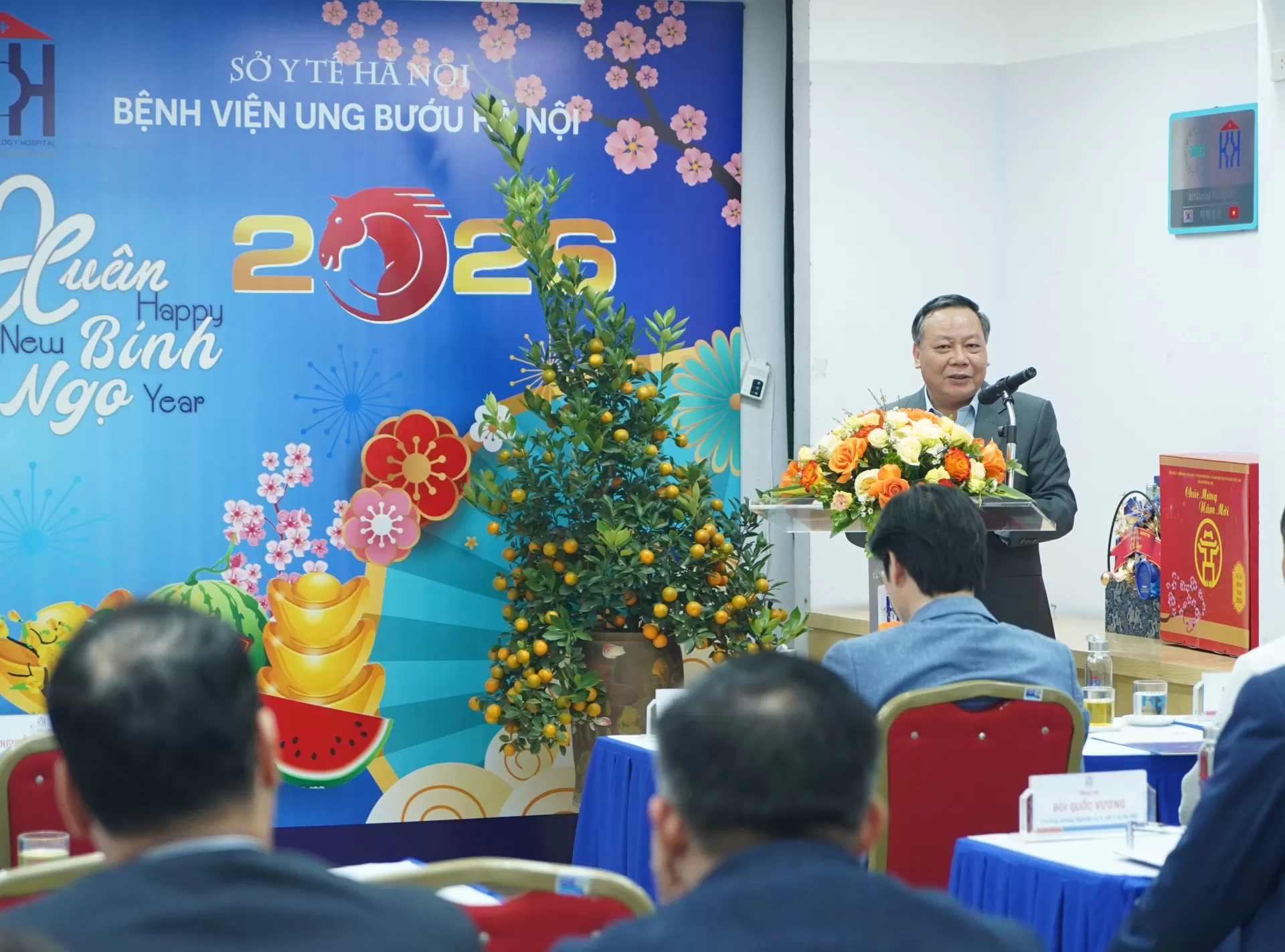 Phát biểu tại chương trình, đồng chí Nguyễn Văn Phong – Phó Bí thư Thường trực Thành ủy Hà Nội ghi nhận và đánh giá cao những nỗ lực, kết quả mà tập thể Bệnh viện Ung Bướu Hà Nội đã đạt được trong thời gian qua, đặc biệt là sự phát triển chuyên môn, tinh thần tận tâm chăm sóc, phục vụ người bệnh và từng bước cải thiện đời sống cán bộ, viên chức, người lao động. Đồng chí đề nghị Bệnh viện tập trung thực hiện một số nhiệm vụ trọng tâm trong thời gian tới, trong đó nhấn mạnh đẩy mạnh chuyển đổi số, xây dựng bệnh viện thông minh với lộ trình rõ ràng, bài bản, hướng tới chuyển đổi số toàn diện trong quản lý, điều hành và khám chữa bệnh nhằm nâng cao chất lượng phục vụ người bệnh và hiệu quả quản trị. Cùng với đó, Bệnh viện cần chú trọng phát triển nguồn nhân lực chất lượng cao, đẩy mạnh hợp tác quốc tế, tăng cường đào tạo, bồi dưỡng đội ngũ cán bộ y tế chuyên sâu, làm chủ các kỹ thuật cao.
