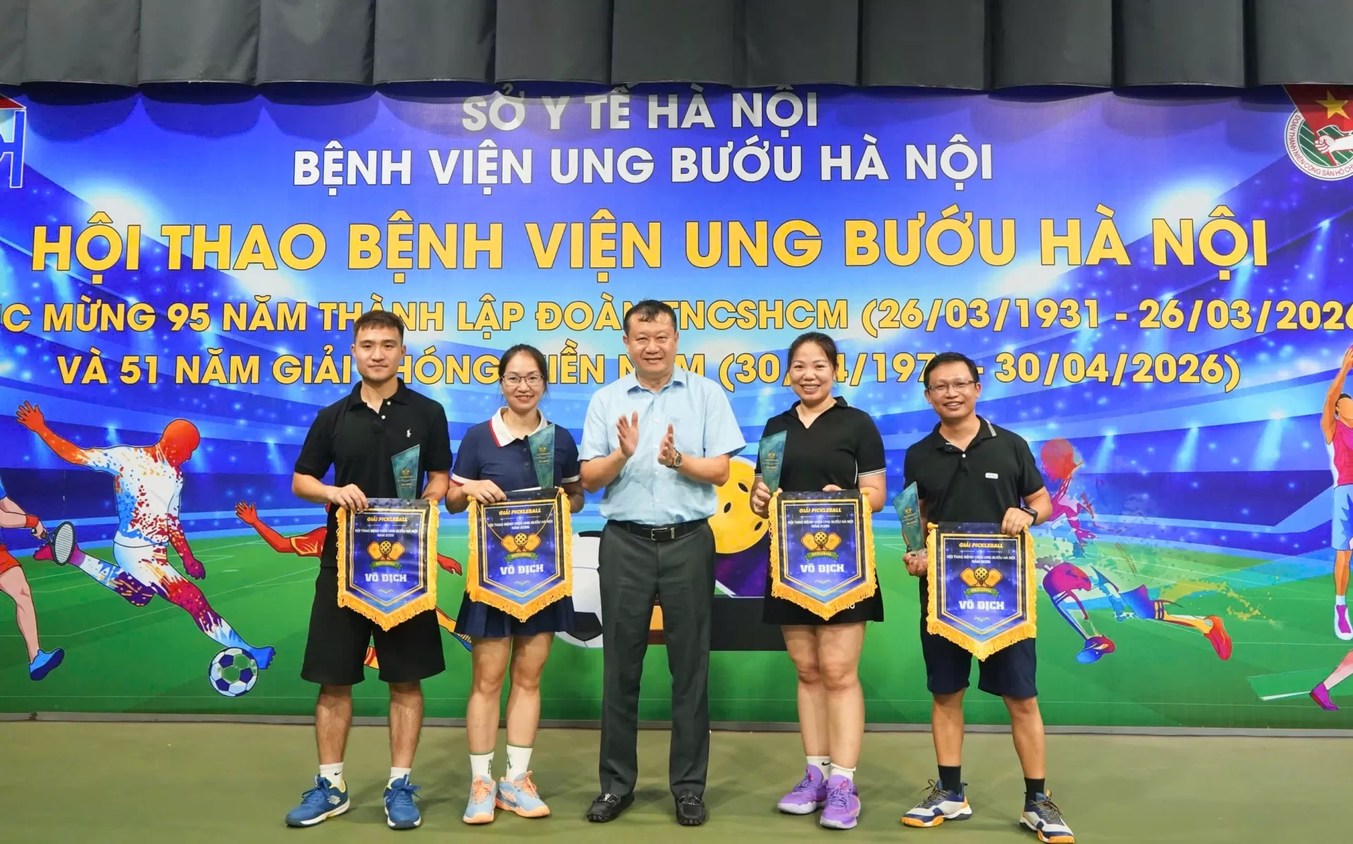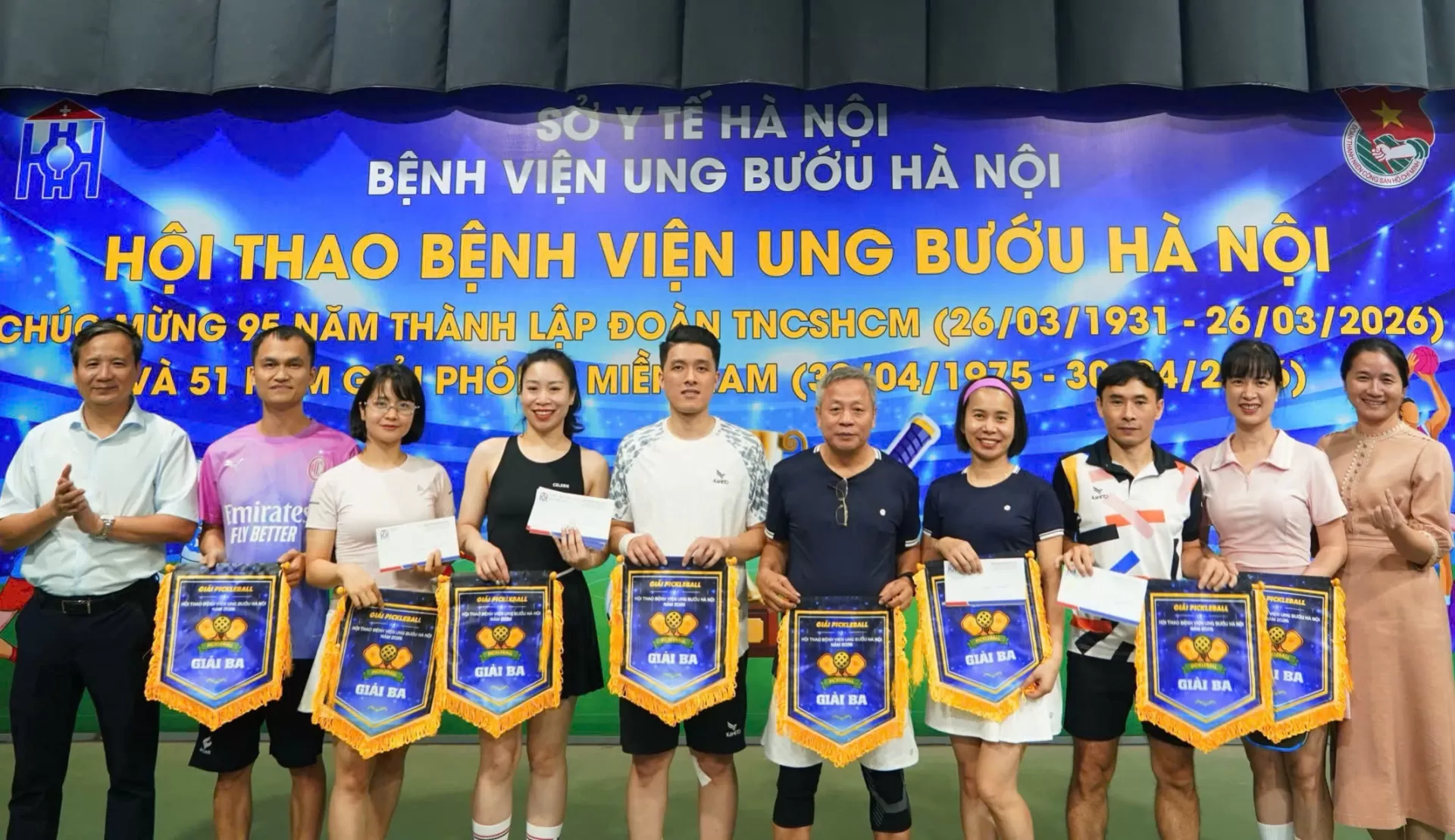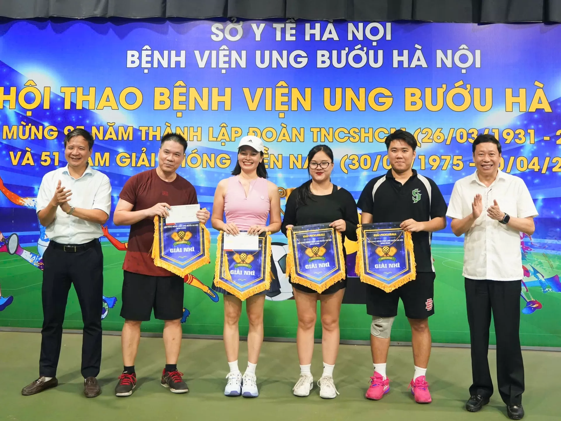 Giải Pickleball – Hội thao Thể dục thể thao Bệnh viện Ung Bướu Hà Nội năm 2026 đã khép lại thành công tốt đẹp, góp phần lan tỏa phong trào rèn luyện thể chất, nâng cao đời sống tinh thần và tăng cường sự gắn kết trong toàn bệnh viện.