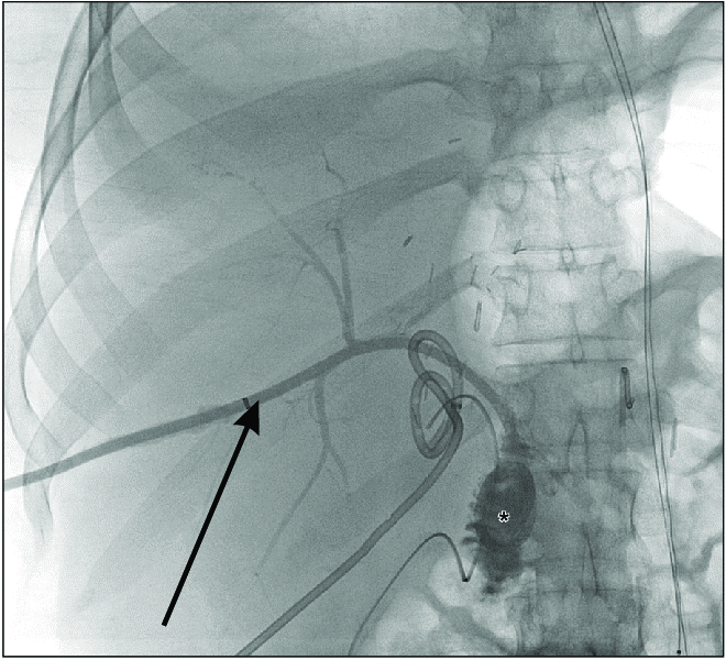 Nguồn: Percutaneous-transhepatic creation of a bilioenteric neoanastomosis in a patient with bile duct injury using cone-beam computed tomography. DOI:10.18528/ijgii180037