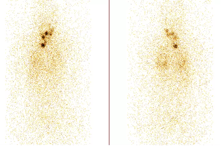 - Trong khoảng 5-7 ngày sau khi nhận liều điều trị, tiến hành xạ hình toàn thân để khảo sát sự tập trung 131I tại vùng tuyến giáp và ghi nhận các ổ tập trung 131I, tổn thương di căn ngoài tuyến giáp nếu có.