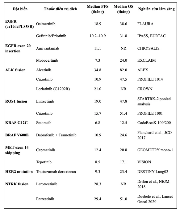 Trong bối cảnh điều trị UTPKTBN giai đoạn di căn, việc tìm ra các đột biến dẫn đường (driven mutations) và các thuốc nhắm đích tương ứng đã làm thay đổi cách tiếp cận điều trị bước một.