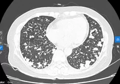 BN nữ P.T.H, sinh năm 1967, nhập viện vào thời điểm tháng 04/2024 vì lý do ho khan kéo dài, khó thở khi gắng sức, kèm theo đau nhiều cột sống ngực, thắt lưng. Kết quả kiểm tra ban đầu cho thấy hình ảnh tổn thương u phổi nhiều khối lan toả 2 phế trường, kèm theo di căn xương đa ổ. Kết quả sinh thiết vào vị trí u thuỳ dưới phổi phải là ung thư biểu mô tuyến phổi, xét nghiệm giải trình tự gen thế hệ mới NGS phát hiện đột biến xoá đoạn trên exon 19 gen EGFR (del19/EGFR). Bệnh nhân được lựa chọn liệu pháp nhắm đích ưu tiên là thuốc nhắm đích EGFR-TKI thế hệ 3, sau 6 tuần điều trị, tổn thương phổi 2 bên đáp ứng gần hoàn toàn trên CLVT ngực, bệnh nhân giảm đau rất nhiều tại tổn thương di căn xương cột sống, có thể sinh hoạt đi lại được, hoàn toàn không còn triệu chứng cơ quan hô hấp như ho hay tức ngực, khó thở.