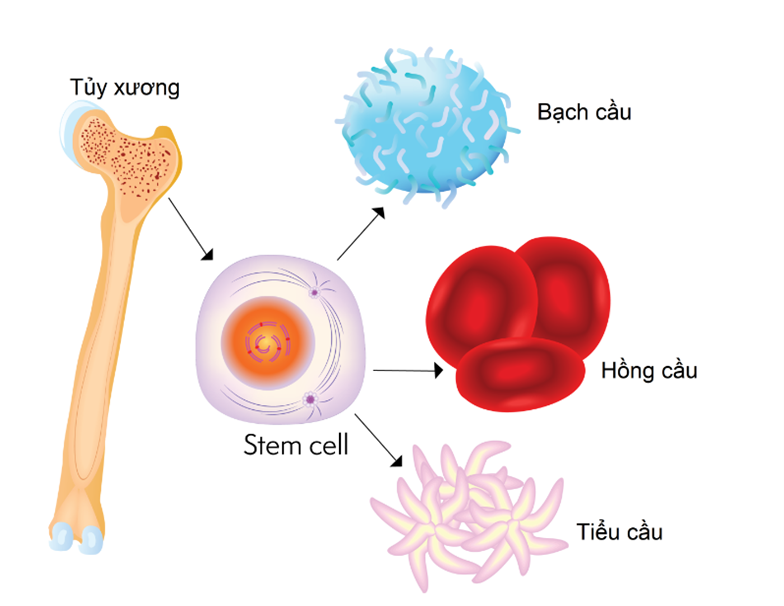 Hình 1. Tế bào gốc (stem cell) và các tế bào máu được tạo thành