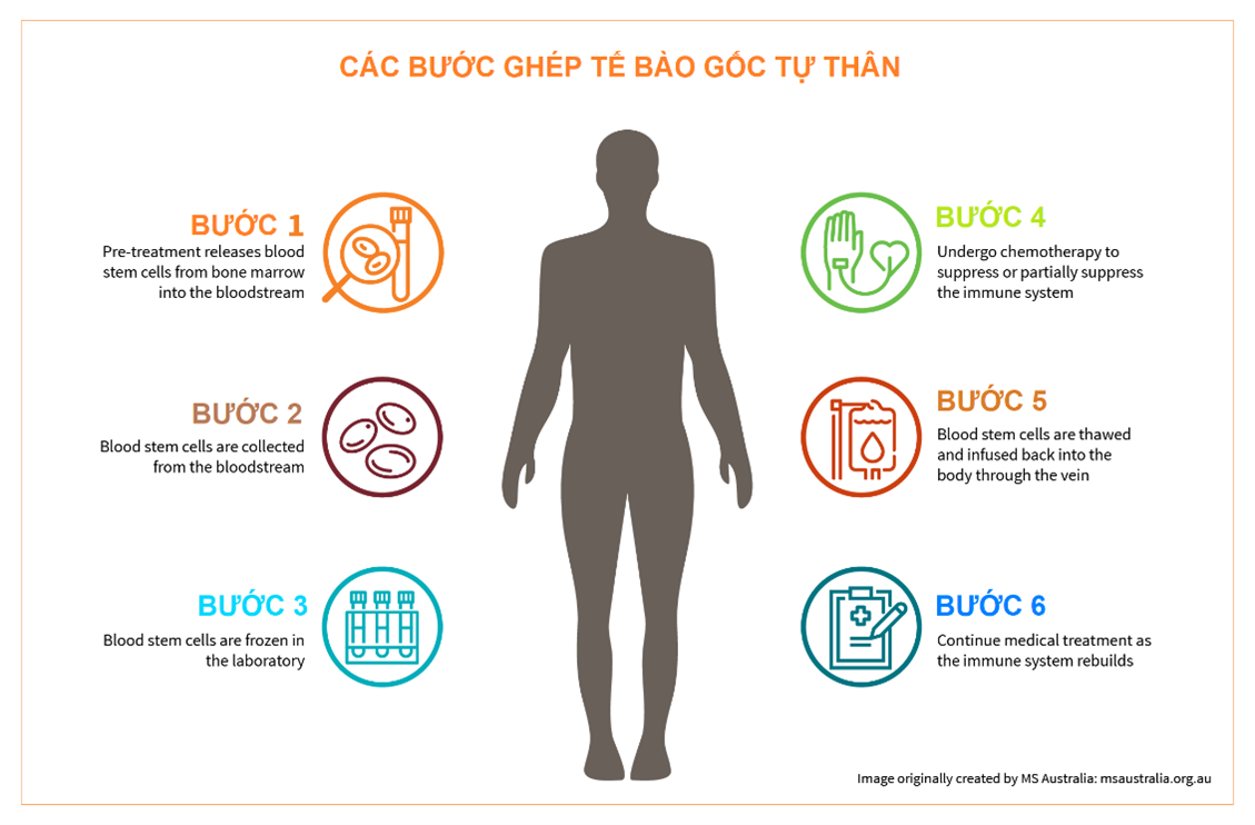 Hình 2. Ghép tế bào gốc tự thân (tế bào gốc được lấy từ tủy của chính bệnh nhân)