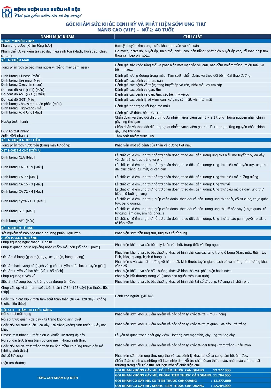 Gói khám sức khỏe định kỳ và phát hiện sớm ung thư nâng cao - Nữ trên 40 tuổi