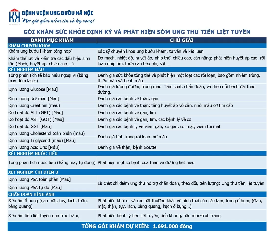 Gói khám sức khỏe định kỳ và phát hiện sớm ung thư tiền liệt tuyến