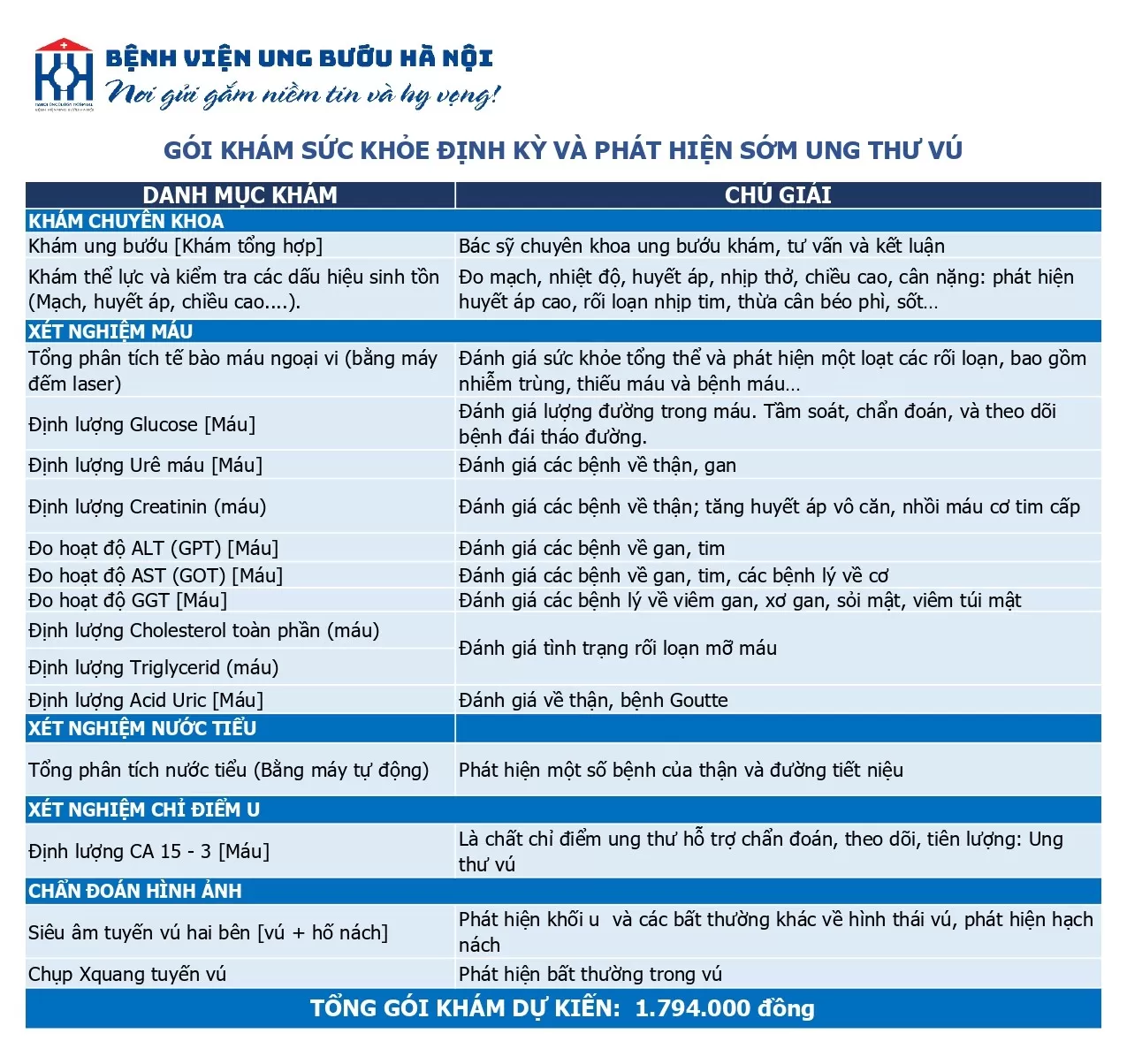 Gói khám sức khỏe định kỳ và phát hiện sớm ung thư vú