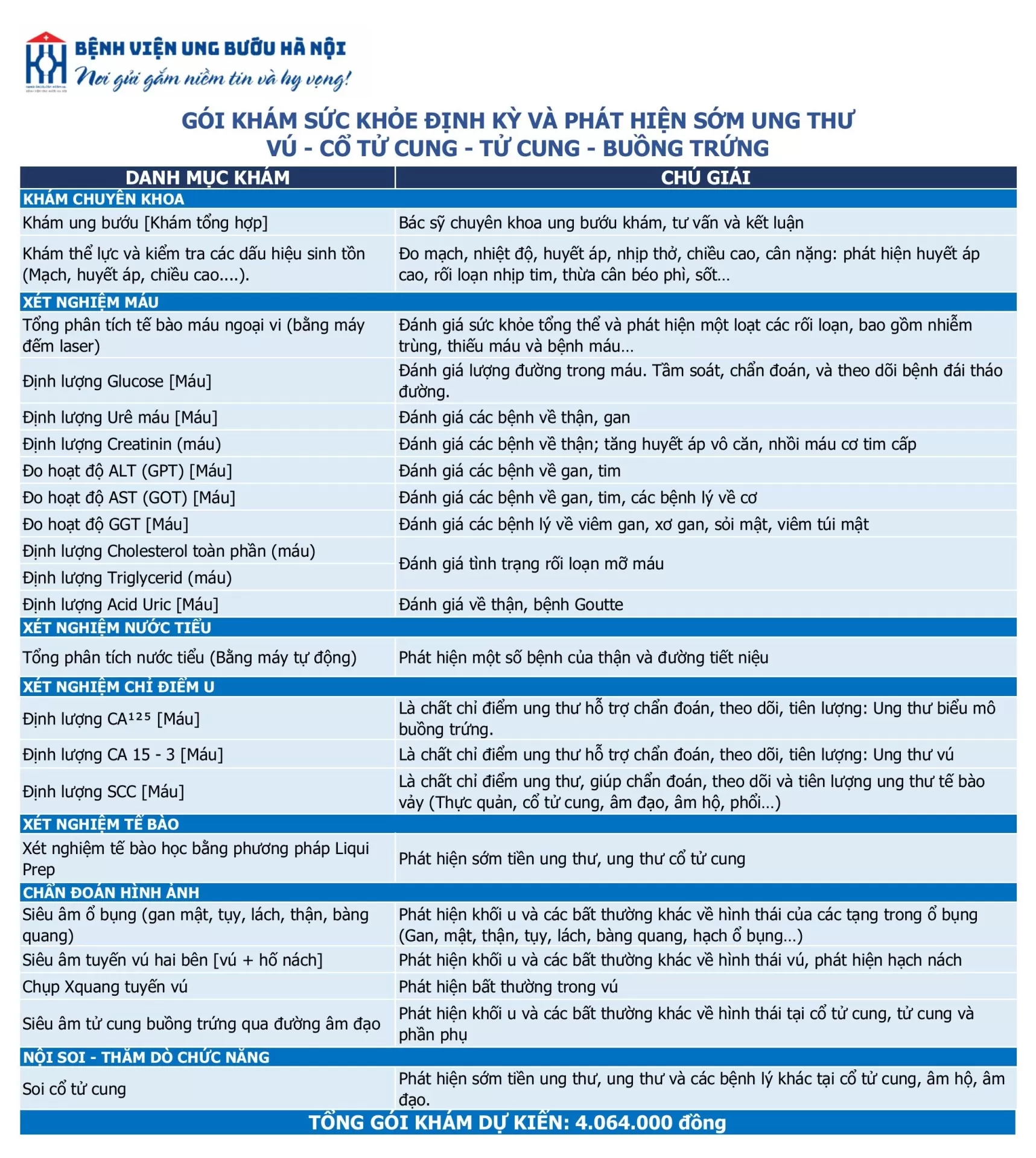 Gói khám sức khỏe định kỳ và phát hiện sớm ung thư vú - cổ tử cung - tử cung - buồng trứng
