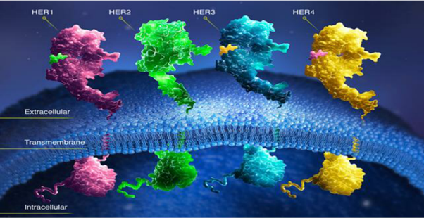 - Pertuzumab: Là một kháng thể đơn dòng tái tổ hợp nhân hóa gắn chuyên biệt vào vùng ngoại bào tham gia nhị trùng hóa (phân vùng II) của protein thụ thể yếu tố tăng trưởng thượng bì người (HER2), từ đó ngăn chặn sự bắt cặp dị hợp tử phụ thuộc ligand của HER2 với các HER khác cùng họ, bao gồm EGFR, HER3 và HER4. Kết quả là Pertuzumab ức chế sự phát tín hiệu nội bào của ligand làm ngừng sự tăng trưởng tế bào và gây chết tế bào theo chương trình. Chỉ định phối hợp vói trastuzumab trong điều trị tân bổ trợ và bổ trợ tùy vào giai đoạn của BN.