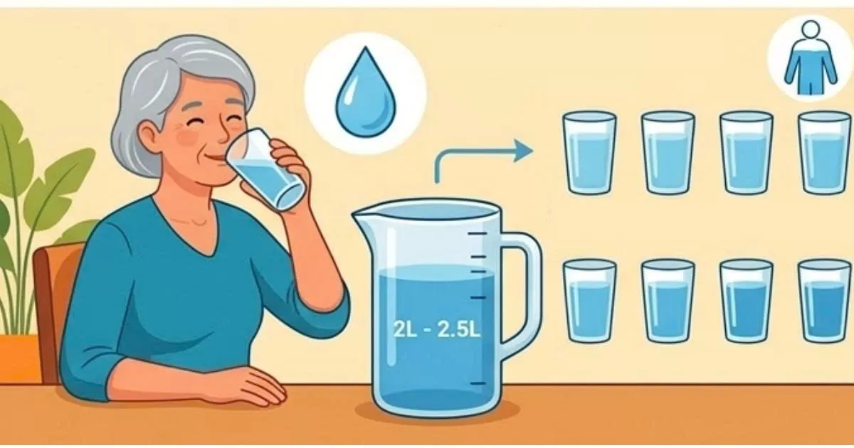 Uống 2-2.5 lít nước/ngày, chia rải rác trong ngày.