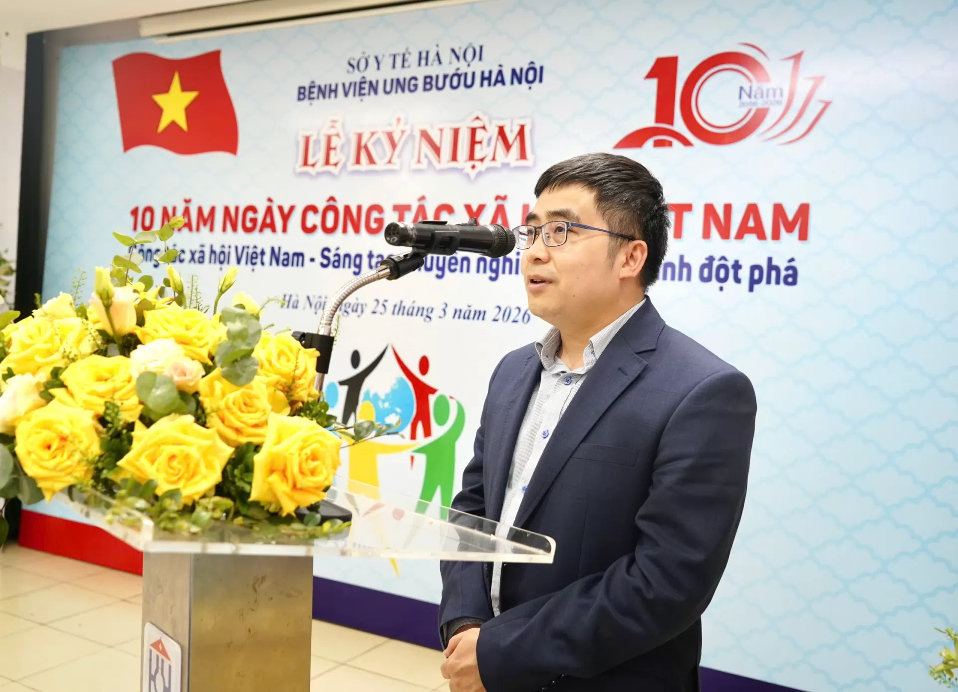 Phát biểu khai mạc chương trình, Thầy thuốc Ưu tú, TS.BS. Bùi Vinh Quang – Bí thư Đảng ủy, Giám đốc Bệnh viện Ung Bướu Hà Nội nhấn mạnh vai trò ngày càng quan trọng của công tác xã hội trong chăm sóc toàn diện người bệnh; đồng thời ghi nhận những nỗ lực không ngừng của đội ngũ cán bộ công tác xã hội và khẳng định bệnh viện sẽ tiếp tục tạo điều kiện để lĩnh vực này phát triển chuyên nghiệp, góp phần nâng cao chất lượng điều trị và chăm sóc người bệnh.
