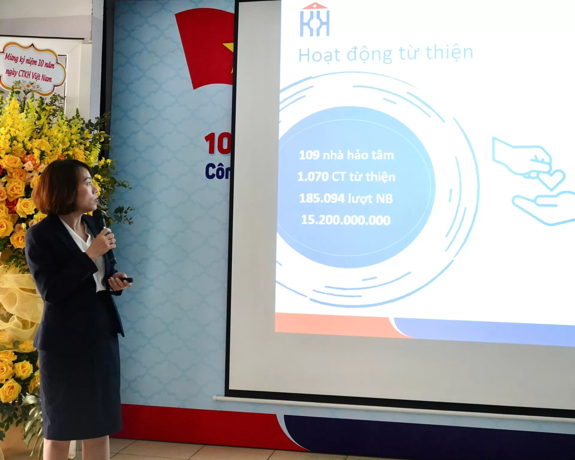 Tiếp nối chương trình, BS.CKII. Lê Phương Linh – Trưởng phòng Quản lý chất lượng & Công tác xã hội đã trình bày báo cáo tổng kết hoạt động công tác xã hội, giúp các đại biểu nhìn lại chặng đường phát triển với nhiều dấu ấn nổi bật, khẳng định vai trò cầu nối giữa bệnh viện – người bệnh – cộng đồng.