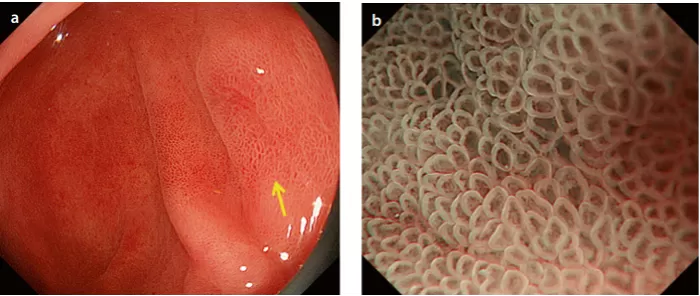 Với nội soi thông thường, việc phân biệt giữa niêm mạc dạ dày lành tính và các tổn thương nghi ngờ ác tính thường gặp nhiều khó khăn. Tuy nhiên, khi áp dụng kỹ thuật nội soi phóng đại kết hợp với các phương pháp tăng cường hình ảnh, các đặc điểm vi cấu trúc bề mặt và hệ thống vi mạch máu được làm rõ, từ đó giúp chẩn đoán tổn thương chính xác hơn.