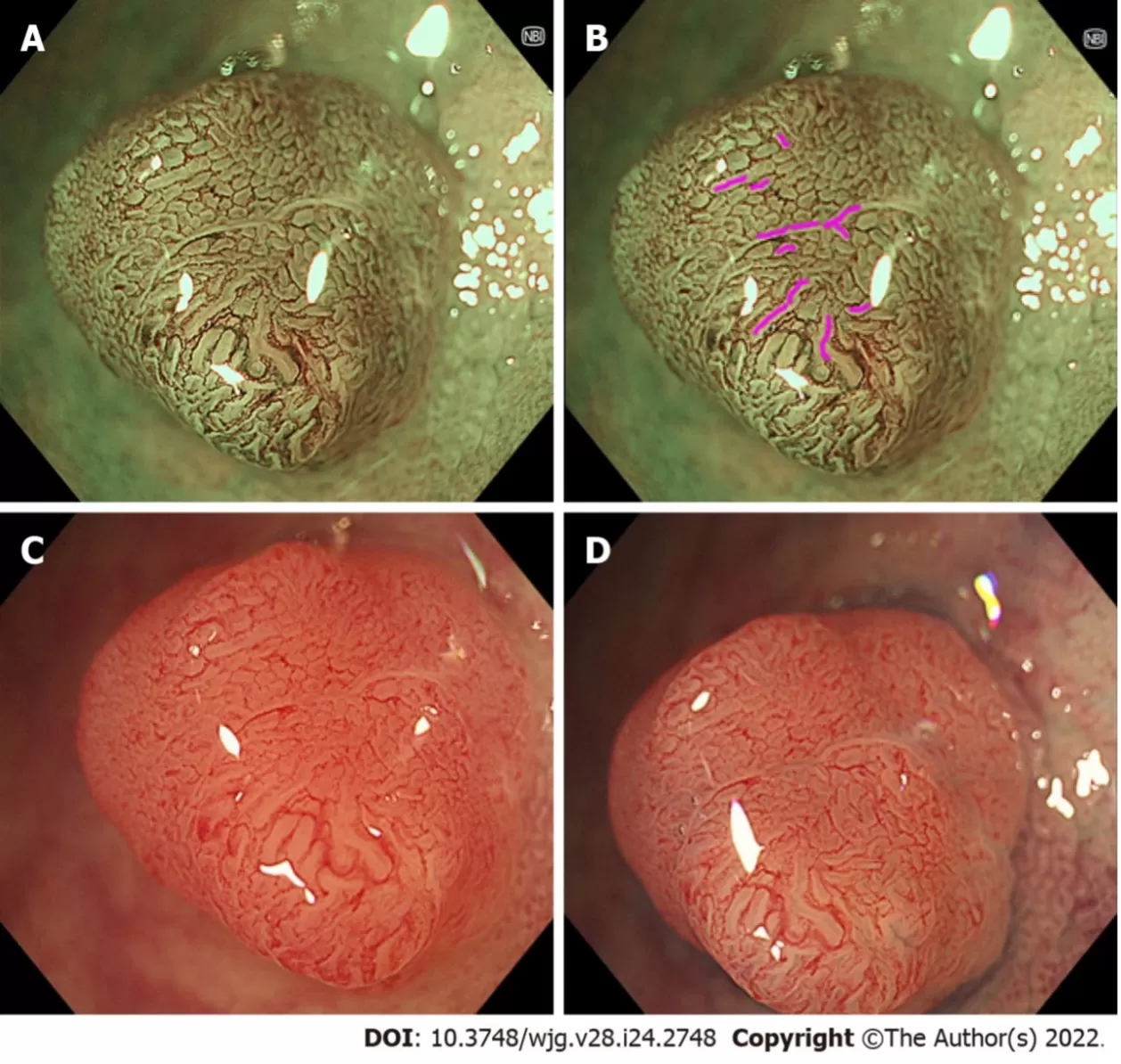 Ở đại trực tràng, kỹ thuật nội soi phóng đại kết hợp tăng cường hình ảnh đặc biệt hữu ích trong việc phát hiện các polyp nhỏ hoặc tổn thương phẳng – những dạng tổn thương dễ bị bỏ sót khi chỉ sử dụng nội soi thông thường. Ngoài ra, phương pháp này còn giúp nhận diện các đặc điểm gợi ý ác tính, hỗ trợ bác sĩ lựa chọn chiến lược xử trí phù hợp nhất cho người bệnh.