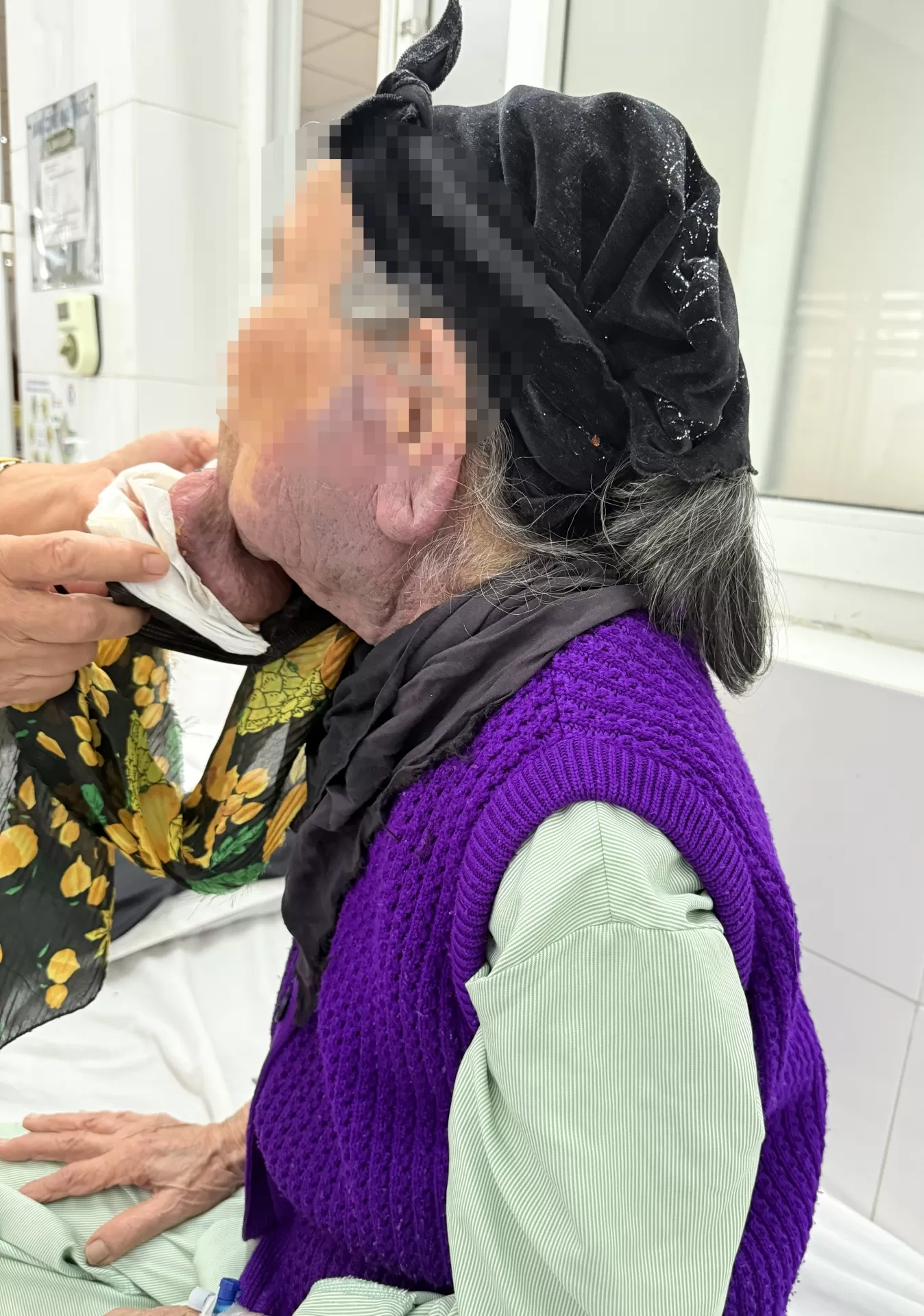 Theo lời kể của gia đình, ngay từ khi sinh ra, bà Đ. đã có một vết bớt nhỏ ở môi dưới. Vết bớt lớn dần theo năm tháng, đến khoảng 40 tuổi phát triển thành một khối u to bằng ngón tay rồi tiếp tục phình to. Ba năm gần đây, khối u phát triển nhanh, đạt kích thước khoảng 10 × 8 × 6 cm, tương đương nắm tay người lớn. Khối u thường xuyên chảy máu, chảy dịch, có mùi, làm ảnh hưởng nghiêm trọng đến ăn uống và sinh hoạt hằng ngày. Vì tâm lý e ngại phẫu thuật khi tuổi đã cao, bà Đ. chấp nhận sống chung với bệnh suốt nhiều năm, chỉ đến khi khối u hoại tử, nhiễm trùng nặng và chảy máu liên tục, gia đình mới đưa bà đến Bệnh viện Ung Bướu Hà Nội. Sau khi được bác sĩ tư vấn và động viên, người bệnh quyết định lên bàn mổ.