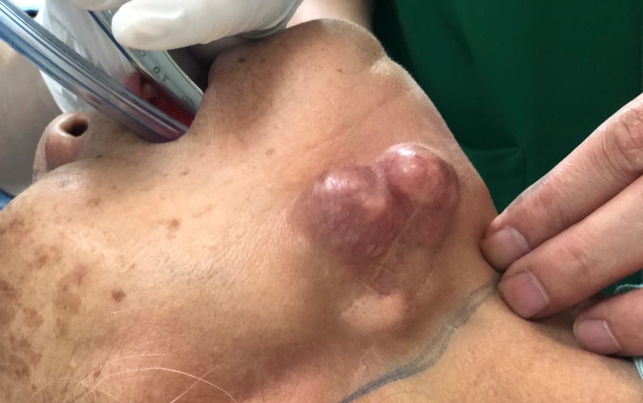 Khối ung thư tuyến nước bọt dưới hàm xâm lấn rất rộng