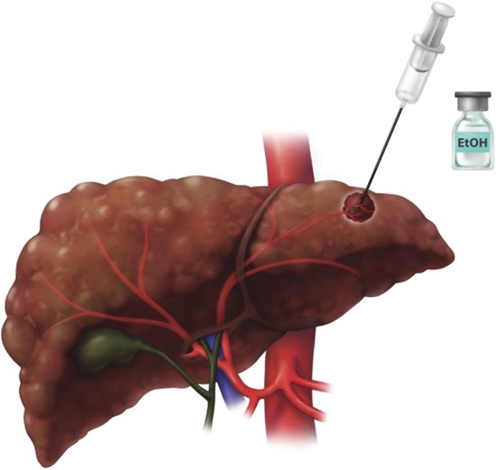 Tiêm cồn tuyệt đối khối u gan qua da.